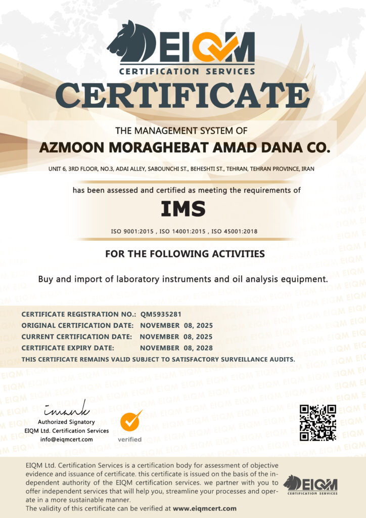 شرکت آماد دانا با بیش از 35 سال تجربه و در اختیار داشتن آزمایشگاه جامع مجهز به جدیدترین مدل تجهیزات آنالیز روغن از برندهای مطرح در این صنعت، ضمن اخذ استاندارد ISO/IEC17025 از مرکز ملی تایید صلاحیت ایران، پایش وضعیت تجهیزات مکانیکی و ترانسفورماتورها و ارزیابی کیفی روغن نو را به صنایع کشور ارائه می نماید. همچنین با در اختیار داشتن دفاتر بین المللی اقدام به واردات انواع دستگاه های آنالیز روغن و مواد مرجع کالیبراسیون نموده است. ساخت بیش از 40 مدل تجهیزات آنالیز روغن و ارائه خدمات آموزش و مشاوره مرتبط با پایش وضعیت و روانکاری از دیگر افتخارات ما می باشد.